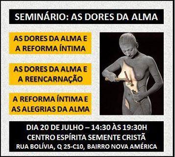 Os trabalhadores do Centro Espírita Semente Cristã, de Parnaíba, em comemoração ao 11º aniversário da instituição, realizarão no dia 20 de julho o Seminário As Dores da Alma.