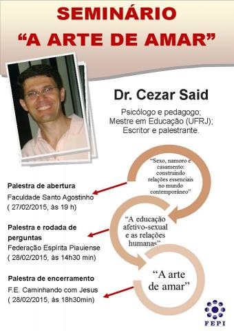 Dia 27/02 as 19:00hs Dr Cesar Said ira falar sobre a Arte de Amar.