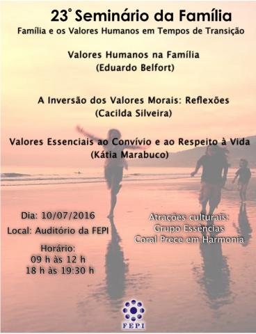 No próximo domingo (10) a Federação Espírita Piauiense realiza 23º Seminário da Familia com o tema: Família e os valores nos tempos de transição pela manhã e à noite.