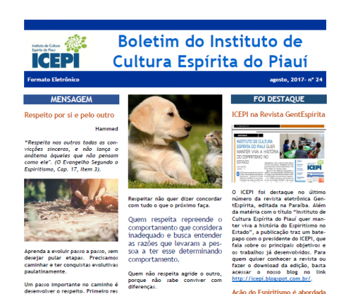 Confira o boletim do Instituto de Cultura Espírita do Piauí do mês de agosto de 2017: https://goo.gl/RZZr2R