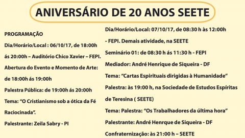 A Sociedade de Estudos Espíritas de Teresina realiza atividade comemorativa pela fundação da Instituição.