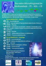 Acontece nos dias 05 e 06 de março no Auditório Chico Xavier da Federação Espírita Piauiense o Encontro Microrregional da Mediunidadade (PI-MA-CE) e que reunirá dirigentes, estudantes dos três estados. O evento conta com a participação do coordenador nacional da Mediunidade da Federação Espírita Brasileira, Jacobson Trovão e da coordenadora Microrregional Nordeste, Cristina Pires.