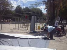 Uma equipe de trabalhadores da Federação Espírita Piauiense passou todo o domingo preparando o stand onde funcionará a Feira do Livro Espírita de Teresina, na Praça Pedro II, no centro da capital.