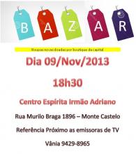O Centro Espírita Irmão Adriano realizará, no dia 09 de novembro, um bazar beneficente a partir das 18h30min, somente com roupas novas doadas por butiques da capital.