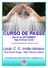 No próximo dia 21 de setembro, o Departamento de Atendimento Espiritual (DATE) da Federação Espírita Piauiense, através da diretora Vânia Reis, estará presente no Centro Espírita Irmão Adriano para a realização de um curso básico de passe.