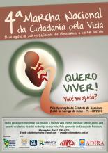 A 4ª Marcha do Movimento Nacional da Cidadania pela Vida – Brasil sem Aborto será realizada na Esplanada dos Ministério, em Brasília, no dia 31 de agosto. Há outra iniciativa em andamento, que é uma coleta de assinaturas pela sua aprovação. Para isso, foi organizada uma petição on line que conta com a assinatura de todos. Colabore na divulgação!