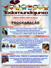 O Grupo Espírita Irmã Scheilla de Piripiri-PI realiza o evento “Todo mundo junto – campanha de valorização da vida e combate ao Suicidio” nos dias 11 a 13 com palestras, mesas-redondas, apresentações culturais, distribuição de mensagens dentre outros no Auditório da Praça de Eventos.