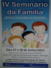 Acontecerá nos dias 27 e 28 de junho o IV Seminário da Familia com o tema: “Desafios Atuais da Família na Visão Espírita” no Centro Espírita Paulo de Tarso. No evento acontecem palestras com os expositores espíritas: Djalmir Oliveira, valquíria Nogueira e Josilene Soares.