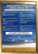 O Centro Espírita Nosso Lar realizará a Semana Espirita 2015 entre os dias 13 a 19 de abril. Serão abordadas diversas temáticas como Anjos e Demônios segundo o espiritismo, a missão do homem inteligente na terra, a força libertadora da doutrina espirita.